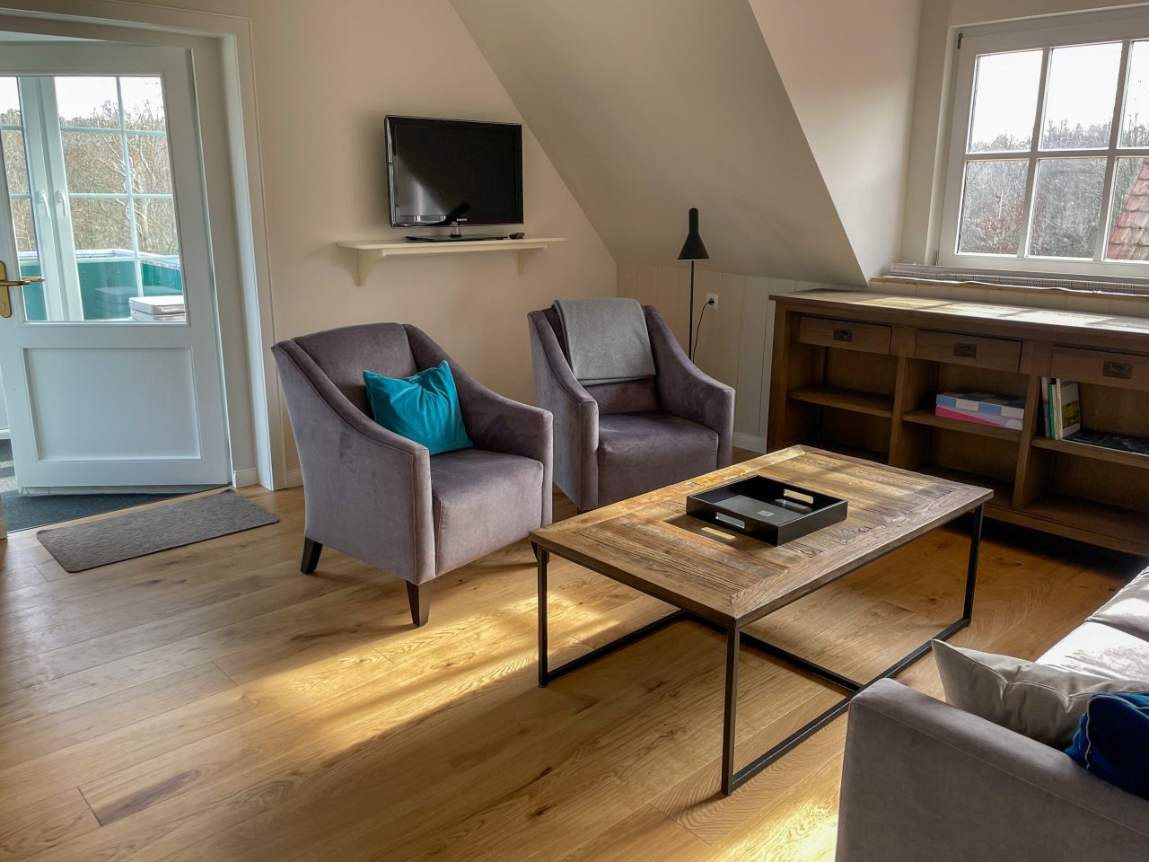 Eure Ferienwohnung, mit eigenem Zugang über die Dachterrasse, liegt im 1. Obergeschoss und bietet mit 74m² Platz für 1-4 Personen zzgl. einem Kleinkind im Kinderbett bis zum vollendeten dritten Lebensjahr.